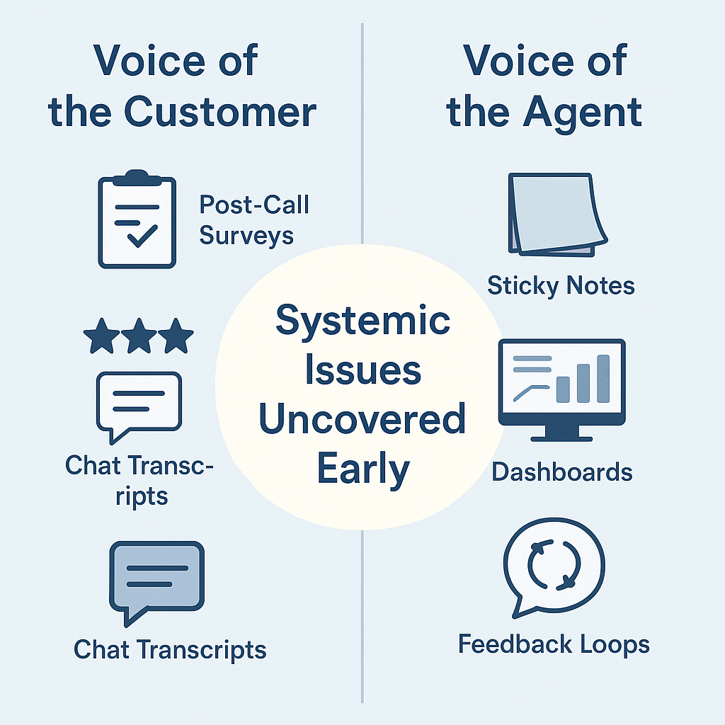 Efficiency gains – Every broken process an agent points out is an opportunity to reduce handle time, rework, and repeat calls.